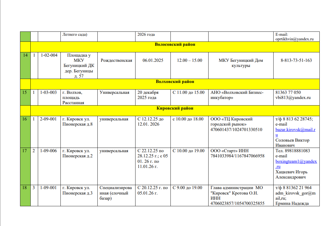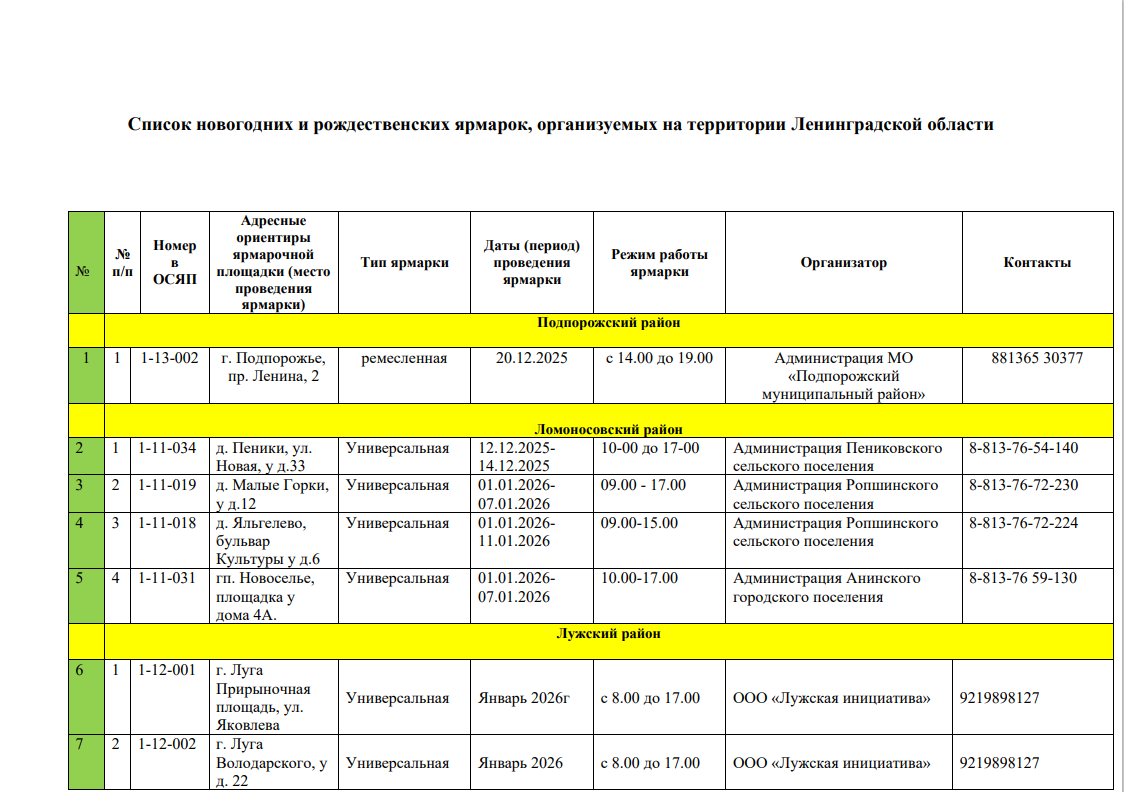 Комитет по развитию малого, среднего бизнеса и потребительского рынка собрал для вас полный список всех Новогодних и Рождественских ярмарок в районах Ленинградской области.